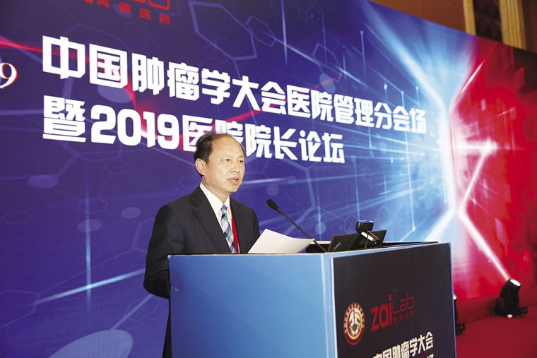 本次大会设主会场1个,主题会场11个,专题分会场77个,工作会12个,总会议场次达101场,为历届之首。注册人数32441名,共有36位院士,2205名国内外知名专家、学者,对肿瘤防治热点进行探讨交流,对肿瘤防治前沿进行权威解析,规模空前。本次大会唯一以医院管理为主题的分论坛——中国肿瘤学大会医院管理分会场暨2019医院院长论坛,以创新、融合、践行为主题,聚焦医院和学科建设,从医院管理的顶层设计和精细化管理方面进行了深入交流和有益探索。来自全国各地的300余位院长和医院管理者参加,我院党委书记、院长单保恩担任会议主持。