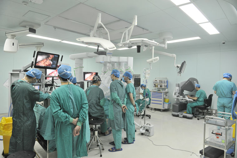 对主刀医生来说,使用机器人可以坐位完成手术,最大限度节省医生体力、延长外科医师工作年限,并且借助达芬奇手术机器人的强大操控能力,医生可以逐步开展更加复杂和高难度的手术,推动手术技术的提高。对于患者而言,能够从这种新的手术方式中获益,例如切口变小、康复时间缩短、住院天数减少等。