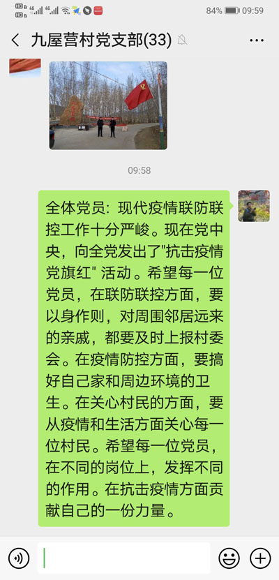 为提高村民安全防护意识,增强战胜疫情的信心和决心,我院驻村工作队主动发声、高密度宣讲,利用微信平台将专家意见、上级指示、家庭预防,以及疫情管控公告等内容广泛宣传。到平日群众扎堆的地方,见人就讲、见聚就劝,积极引导,强化管理。