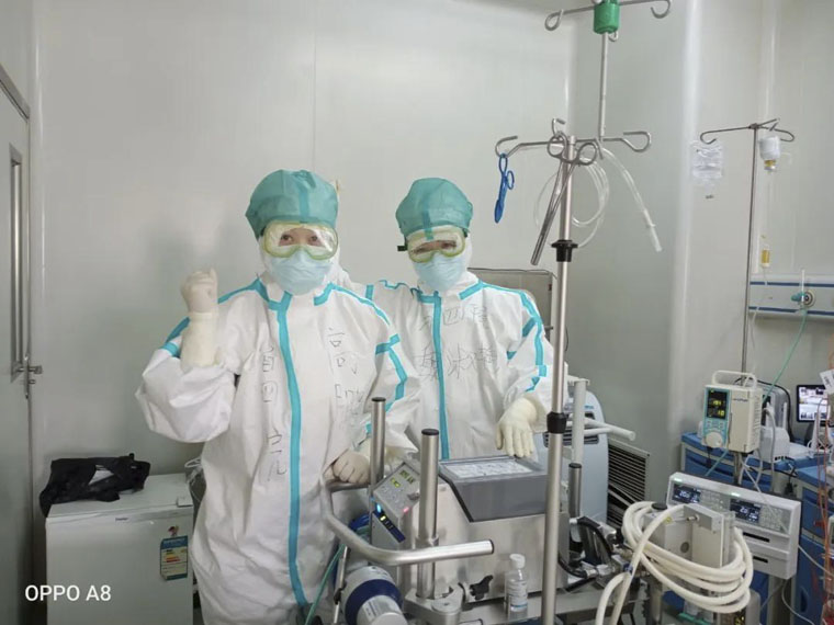 重症组的护理人员有我院的魏淑艳、高鹏、王腾龙和孙美荣,他们均作为带班护理组长参与一线护理工作,保证重症监护病房24小时不间断均有省级的护理专家指导。此外,他们还协助当地医院梳理了病房的规章制度和流程,改善了防控措施。危重患者护理不但任务重、工作量大,而且病情变化快。他们努力克服由于防护装置导致的视线模糊、行动不便等困难,细致入微地观察、监控和操作,为临床决策提供了第一手的证据。因为倒班,他们经常凌晨一两点钟赶往医院,一天进入隔离病房一到两次,每次四个小时,加上穿脱防护的时间,每次将近要六个小时,生活变得极无规律。但大家都毫无怨言地坚持下来了,看到在自己辛苦的努力下,重症监护病房更加规范专业,病人转危为安,劳累之余更是欣慰。