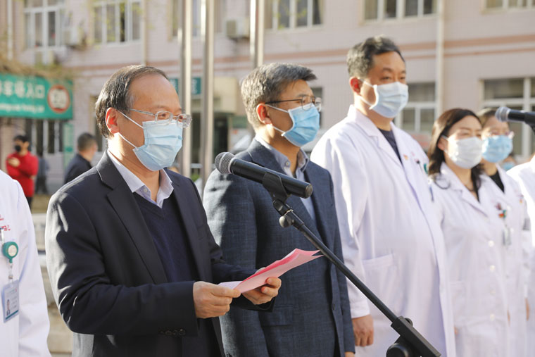 单保恩书记看到亲人回家十分高兴,他代表院党委向队员及家属致以最崇高的敬意和最衷心的感谢。单书记说:“在党和同胞最需要的时候,你们作为河北首批援鄂医疗队员,抛家舍业、挺身而出,夜以继日地奋战在武汉抗击疫情第一线,圆满出色地完成了救援救治任务,还把四院人的好品质、好作风、好形象留在了武汉。在你们身上,展现了服从服务大局的政治站位、吃苦耐劳连续作战的拼搏精神、尽心尽力不畏艰险的担当精神,传递了河北人民对湖北和武汉人民的深情厚谊,彰显了医者仁心和人间大爱,你们是我们四院的骄傲,全院职工都为你们感到骄傲和自豪。”