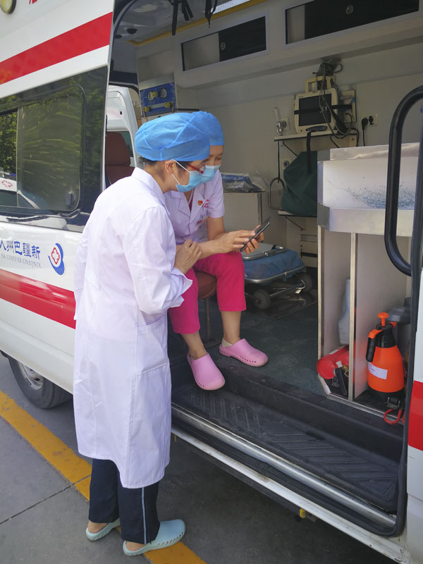 金云主任向救护车上的各位医生分享患者实时的化验结果,并及时向轮台那边传达急救小组的即时意见,“注意输液速度!保温!及时复查血气!”