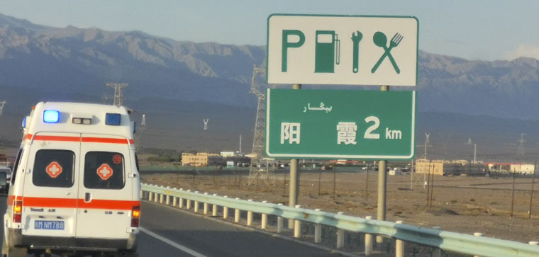 绵亘不断的天山似乎也感受到救护车上的紧急气氛,收敛了平时的风沙,“150公里/小时,神了!”救护车的司机师傅喃喃自语道。