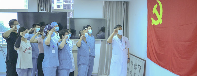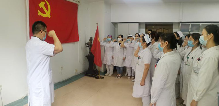 第五党支部曾派出多名党员医护人员前往武汉及河北多地进行支援,发生了很多感人肺腑的事迹。结合当前疫情的特殊形势,召开了这次“迎七一 守初心 重温入党誓词 暨抗疫体会座谈会”为主题的党日活动。大家都积极参加并发言。