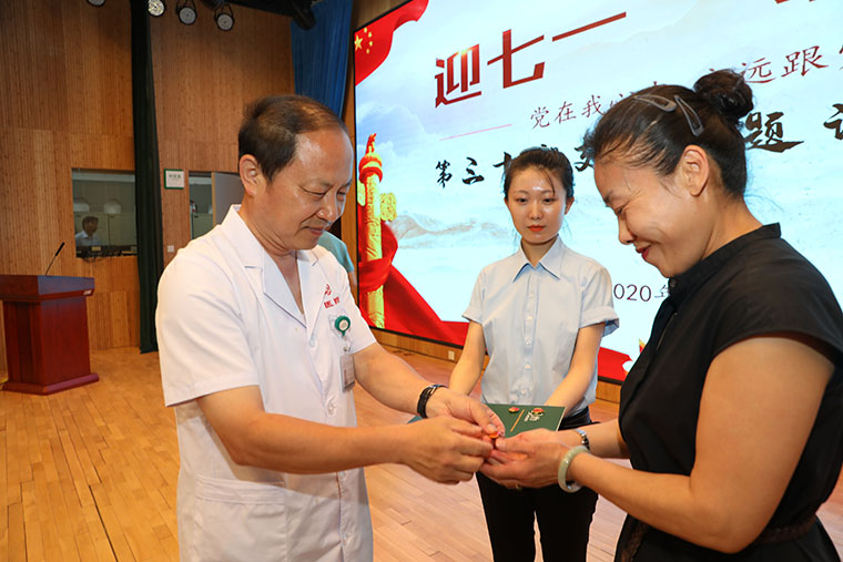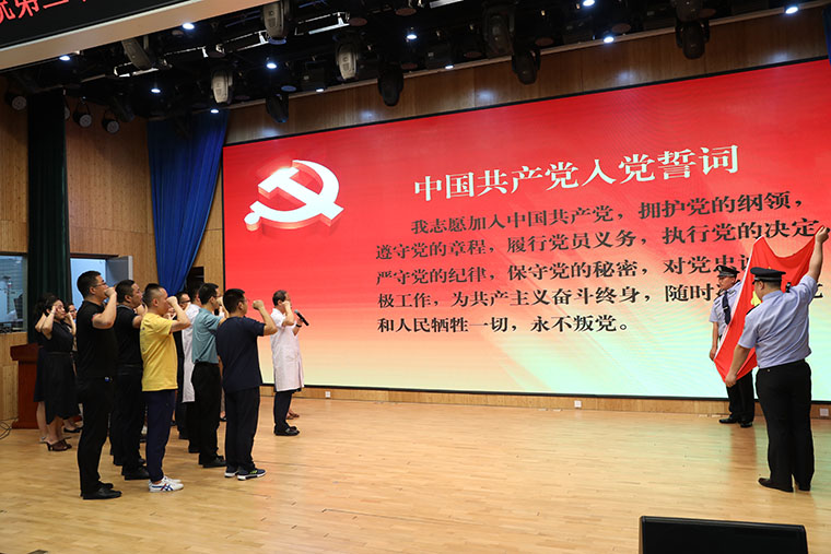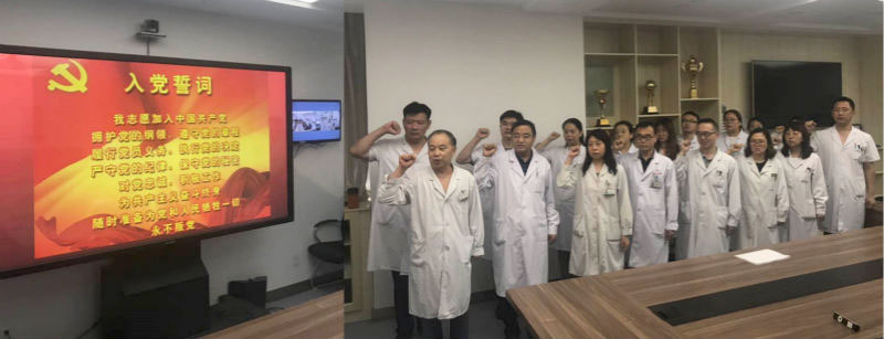 在党的九十九周年华诞到来之际,我院党委组织开展了“迎七一 守初心 重温入党誓词”主题党日活动,纪念我们党栉风沐雨近百载,带领中华民族迈向伟大复兴的光辉历程。医院各支部高度重视、认真组织、积极参与,以创新的形式、丰富的载体,开展党员教育,重温入党誓词。通过主题党日活动,使党员的党性修养进一步提升,理想信念更加坚定。