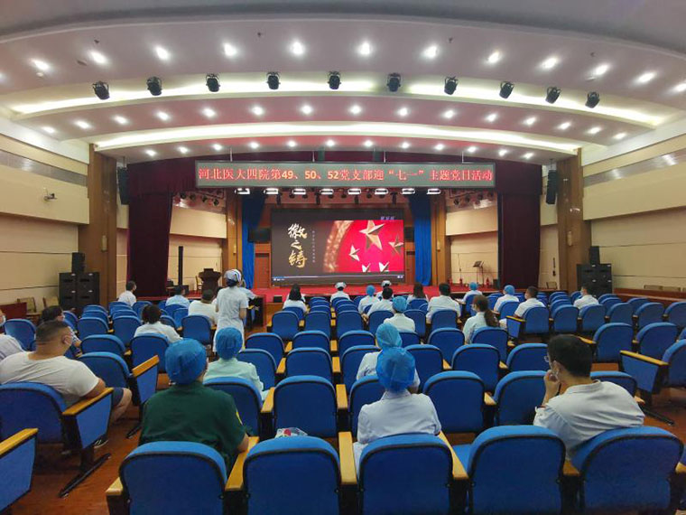 第四党支部全体党员共同观看中国共产党党员入党誓词歌MV,全体党员面对鲜红的党旗庄严宣誓。随后支部同志精心准备了诗朗诵。最后在全体大合唱《没有共产党就没有新中国》《冀医四院院歌》的歌声中主题党日活动圆满结束。