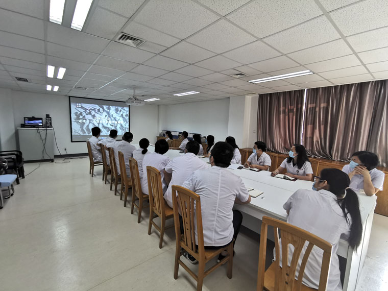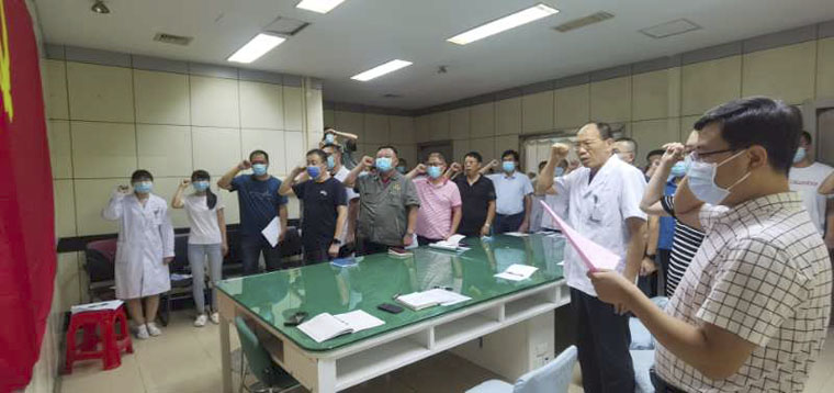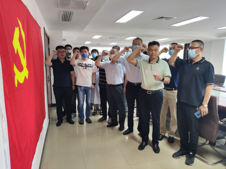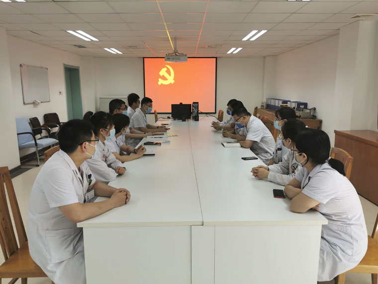 第二十九党支部全体党员观看视频《从红船到巨轮》,学习习近平6月2日主持专家学者座谈会的重要讲话:《构建起强大的公共卫生体系 为维护人民健康提供有力保障》,并重温入党誓词。