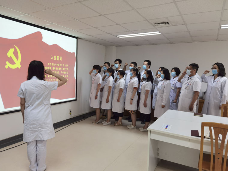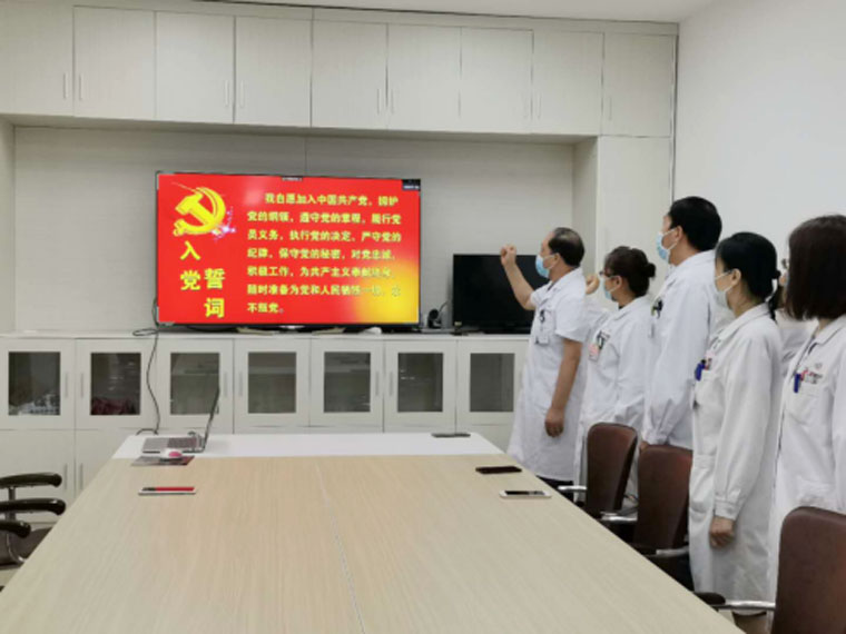 在党的九十九周年华诞到来之际,我院党委组织开展了“迎七一 守初心 重温入党誓词”主题党日活动,纪念我们党栉风沐雨近百载,带领中华民族迈向伟大复兴的光辉历程。医院各支部高度重视、认真组织、积极参与,以创新的形式、丰富的载体,开展党员教育,重温入党誓词。通过主题党日活动,使党员的党性修养进一步提升,理想信念更加坚定。