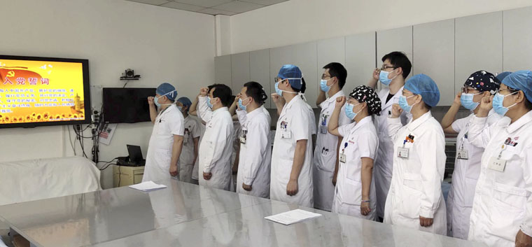 在党的九十九周年华诞到来之际,我院党委组织开展了“迎七一 守初心 重温入党誓词”主题党日活动,纪念我们党栉风沐雨近百载,带领中华民族迈向伟大复兴的光辉历程。医院各支部高度重视、认真组织、积极参与,以创新的形式、丰富的载体,开展党员教育,重温入党誓词。通过主题党日活动,使党员的党性修养进一步提升,理想信念更加坚定。