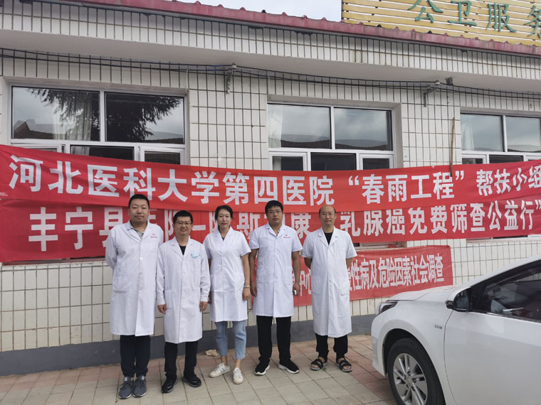 近日,由我院骨科封英发、放一科王祎和焦文鹏、泌尿外科梁向东、心血管外科赵伟超5人组成的“春雨工程”帮扶小组与丰宁满族自治县医院、基层乡镇卫生院及志愿者服务队协作在全县范围内开展“乳腺癌”早期筛查工作,覆盖全县26个乡镇,现首次筛查已圆满结束,共筛查高危人群422人,其中阳性9人,获得当地百姓交口称赞。