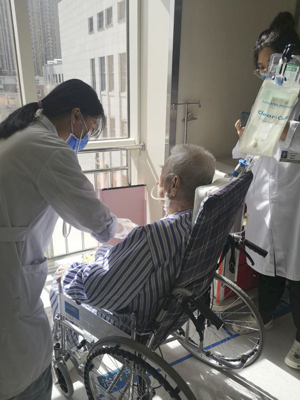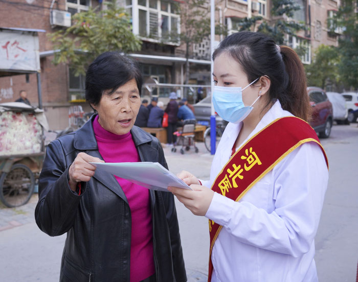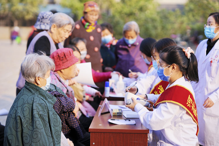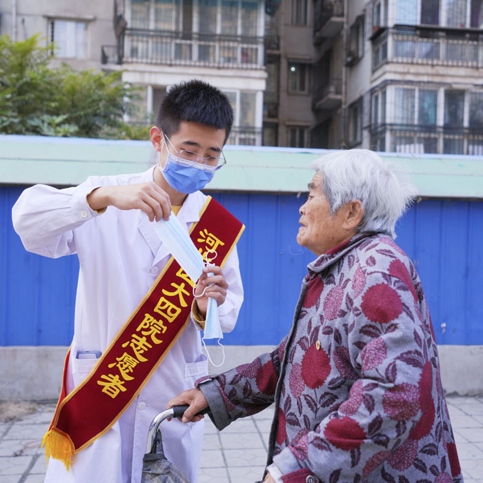 当日上午,2019级专硕13班的同学按照提前分好的小组,在班干部的组织下,前往部分科室为缺少家人陪伴的老年患者提供针对性的服务,包括帮助行动不便的老年患者外出活动,为老年患者查体、聊天等。下午,2020级专硕15班的同学在棉二小区开展社区义诊活动,共为50余位老人进行了健康宣教,还为30余位老人免费测量了血压和血糖。同学们通过传递正确戴口罩、洗手的方式,提醒老人们注意做好疫情期间的个人防护,还给参与活动的老年朋友分发了一些生活中较为常用的“小礼物”。