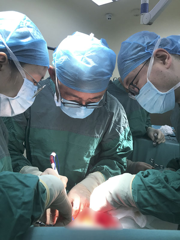 经过全科疑难病例讨论,齐义新主任医师团队制定了最终治疗策略。考虑该肿物是恶性巨大分叶状肿瘤,应对肿物进行手术切除,术中严密止血,必要时可输血纠正贫血。在等待手术期间,患者左乳肿瘤再次出血,血色素降至60g/L。科室负责人在了解情况后,一边责成主管医师对患者进行输血治疗,一边积极协调床位及手术室,待患者血色素上升后马上安排手术。