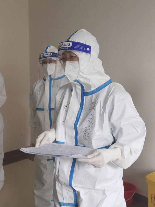 随着石家庄疫情的变化,根据工作安排,呼吸内科陆续抽调人员充实一线抗疫队伍。病区主任王平作为专家组成员进驻河北省胸科医院。胡文霞副主任,耿楠、秦文文主治医师奔赴石家庄市人民医院开展工作。其中,王平主任、胡文霞副主任分别担任胸科医院A2病区主任、市人民医院新冠二区主任,负责科室日常临床工作,指导本病区各医疗小组有序开展患者救治。耿楠、秦文文主治医师在市人民医院新冠六区分别担任分组组长,在工作中秉承细心严谨的工作态度,及时观察患者病情变化,根据患者转归情况做出相应处理意见。