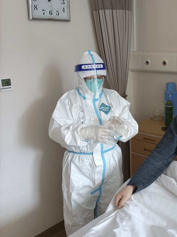 呼吸内科胡文霞副主任,耿楠、秦文文主治医师参与援助,她们分在不同的病区开展工作,耿楠暂时担任医疗队队长。胡文霞副主任医师作为河北省新冠疫情专家组成员,主要负责新冠二区工作。到达市人民医院后,她迅速进入工作状态,尽快熟悉全科患者病情,每日参加国家级专家查房,及时汇报患者病情变化及制定每日治疗措施。每天结束繁重的临床工作后,回到驻地还要填写表格,及时上报患者情况。经过她的整理,繁杂的信息变得清晰明了,她也因为工作细致多次受到国家级专家组的表扬。