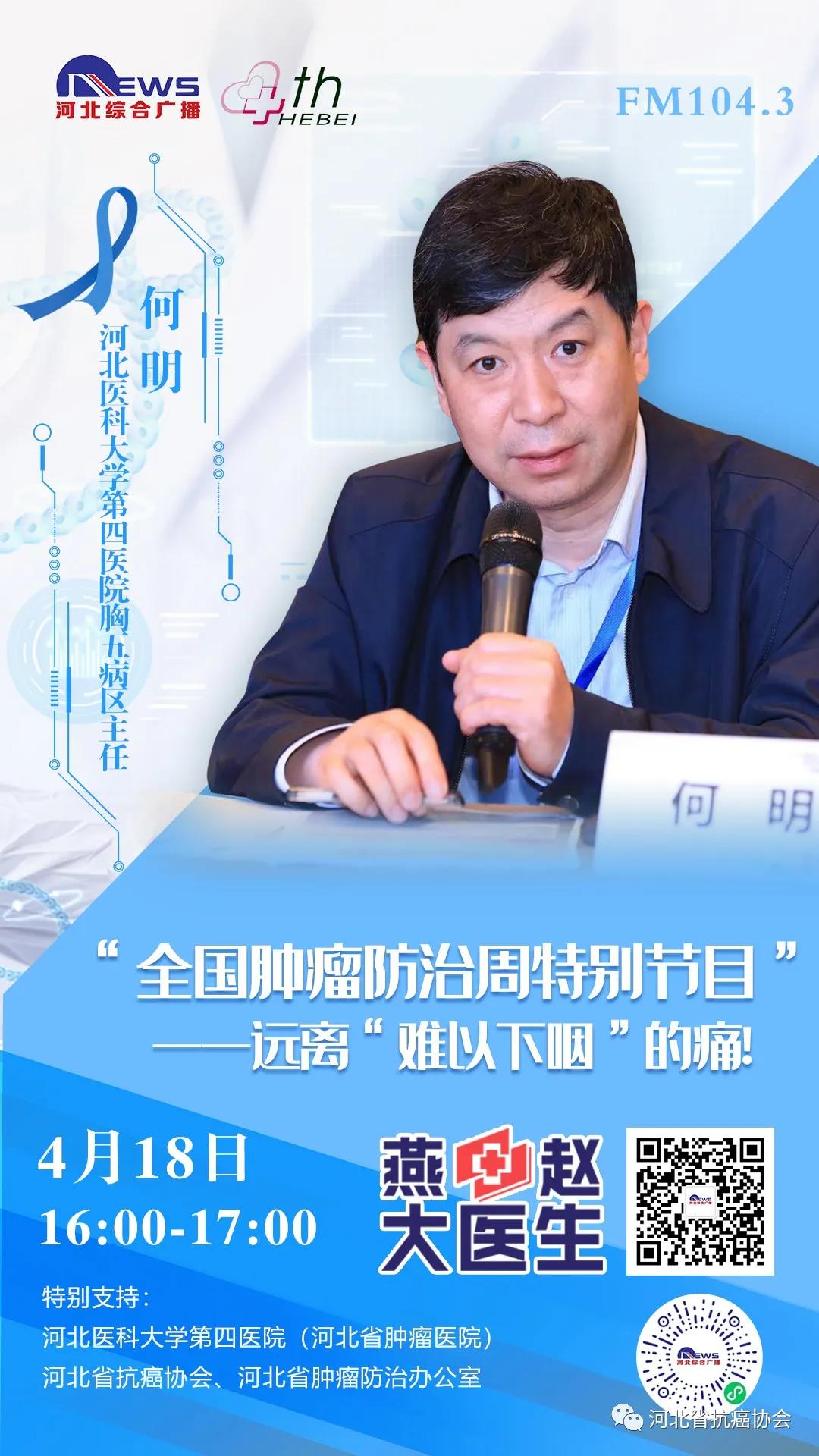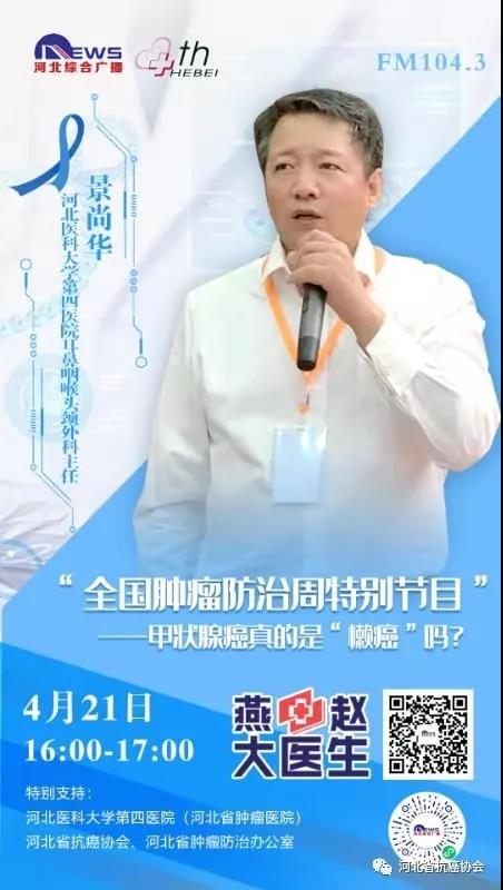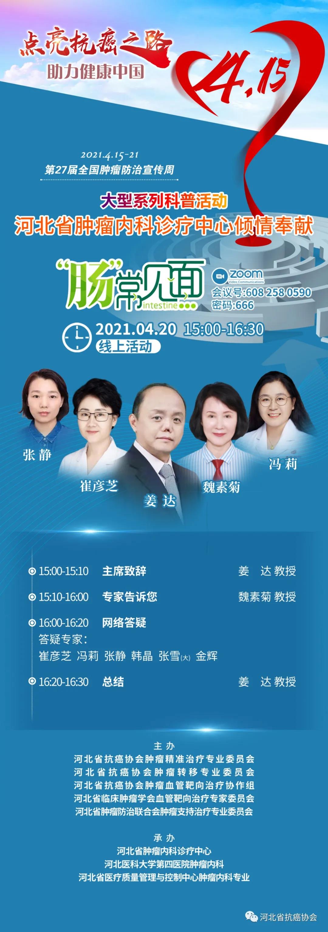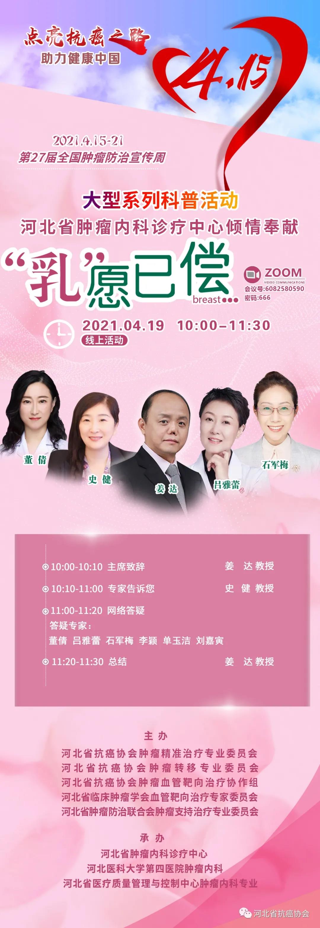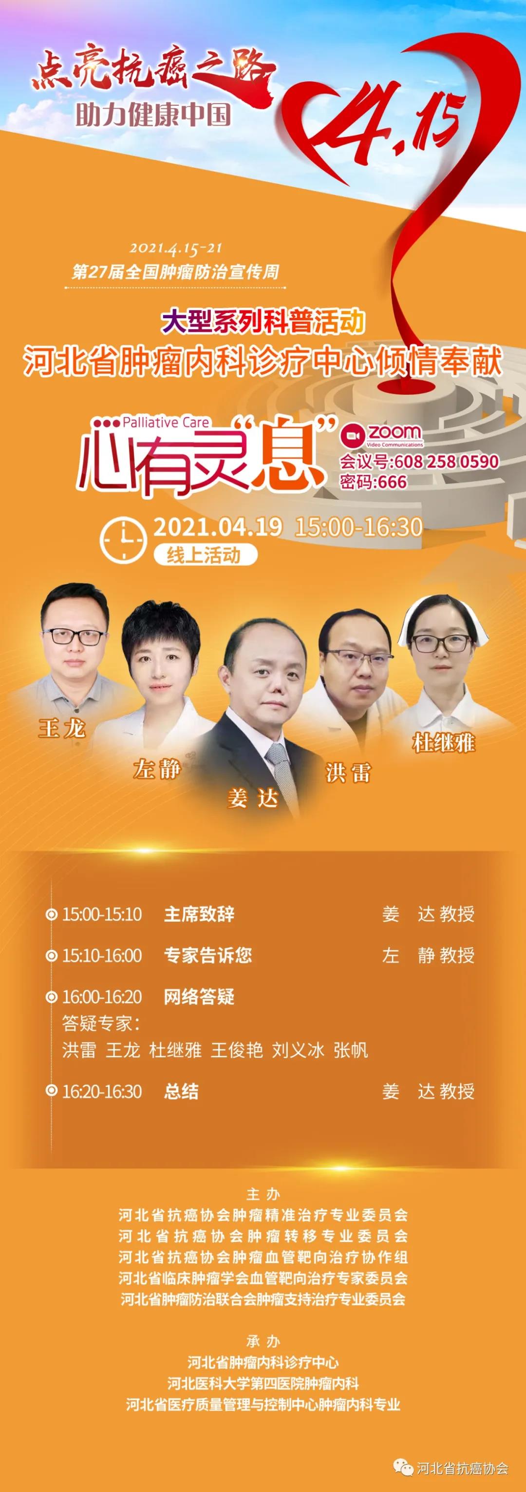 在为期一周的活动中,河北省抗癌协会、河北省癌症中心、各专业委员会、各市抗癌协会都将相继举办形式多样的防癌科普宣传,以医务工作者火热的爱心点亮抗癌之路,助力健康中国!