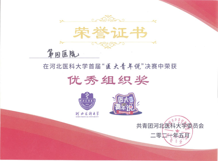 近日,河北医科大学首届“医大青年说”寻找最佳表达者竞赛评选奖项新鲜出炉。我院在此次竞赛中收获颇丰,荣获优秀组织奖,单项一等奖3个,二等奖3个,三等奖2个,优秀奖1个,还有8名青年教职工获得优秀指导教师奖。