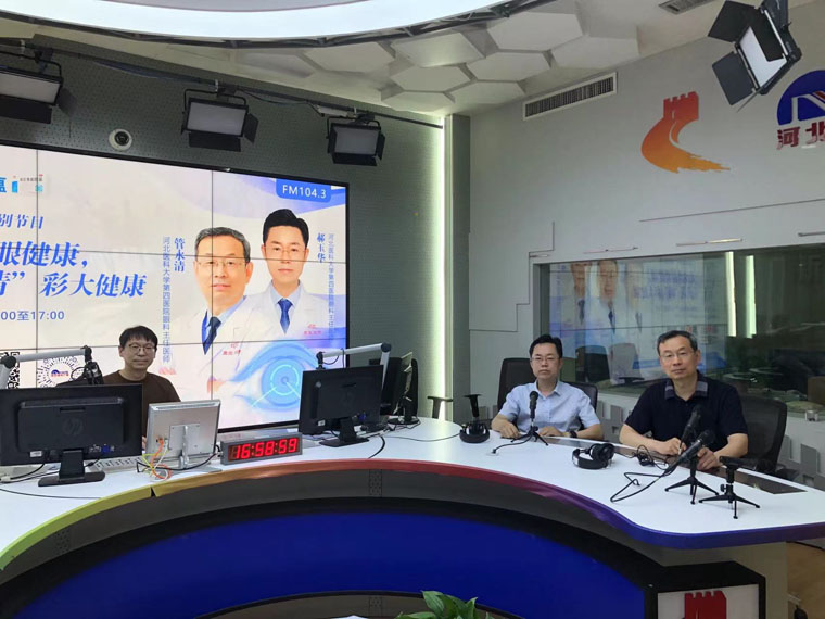 同日下午4点和7点,管永清主任医师、郝玉华主任医师和苑亚贞副主任医师分别通过河北广播电台和阿里健康直播等媒介,向广大受众传递爱眼护眼相关知识,并回答了大家对如何防控儿童青少年近视、预防和治疗老年性白内障问题,为大家防治眼部相关疾病、做到有效预防提供了有益思路。