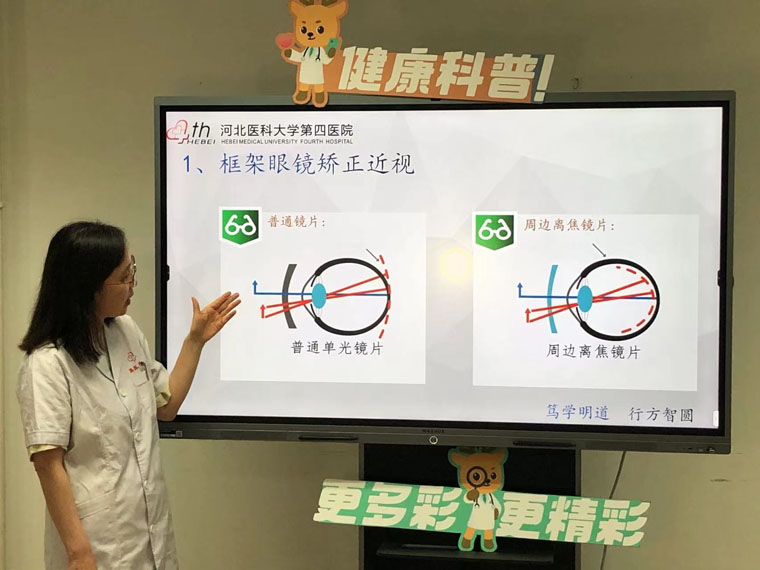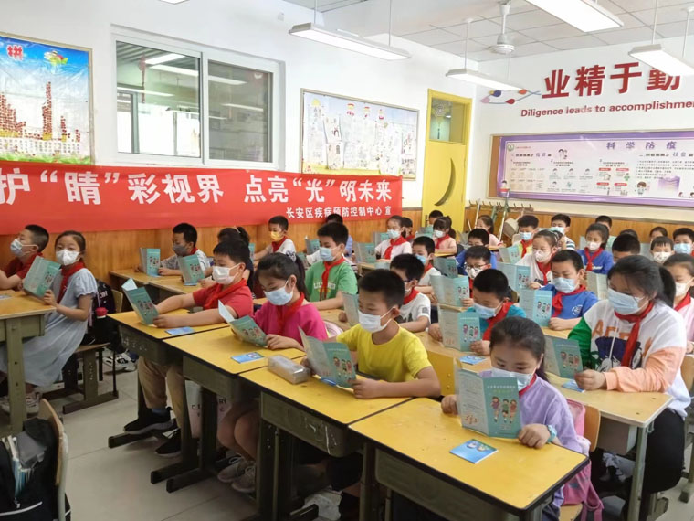 同日,为促进学生养成保护视力的良好习惯,减少近视率的增高,眼科苑亚贞副主任医师、王丹丹主治医师与长安区疾控中心联手走进谈南路小学、保利启新小学及北京师范大学附属学校,对中、小学生开展近视防控宣传,内容通俗易懂、生动形象,涵盖了“什么是近视”、“近视的成因和危害”、“如何预防近视”、“怎样延缓近视进展”等,大家在轻松愉悦的氛围中学习近视常识。