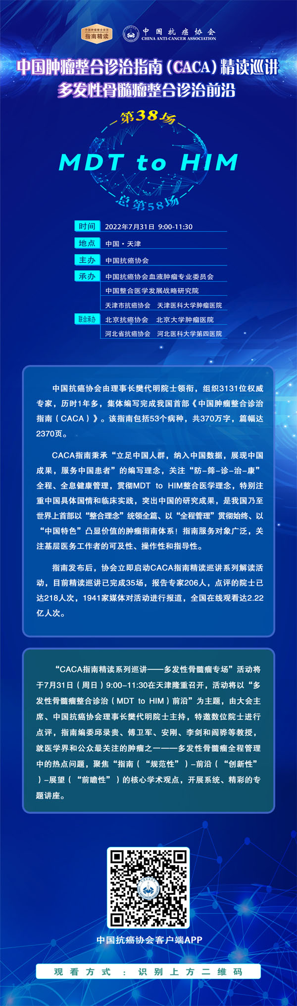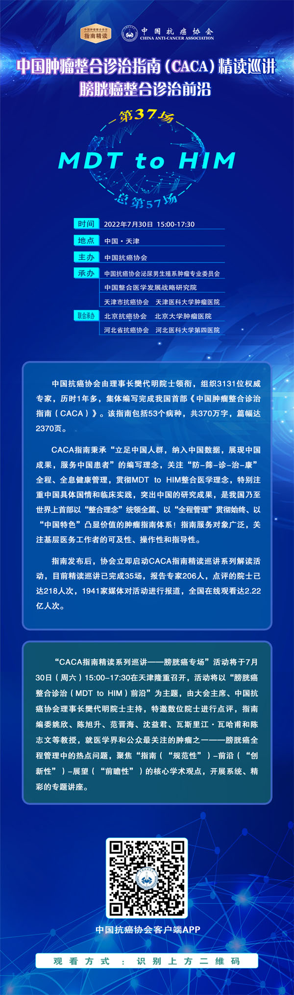 届时将重点围绕“膀胱癌”和“多发性骨髓瘤”如何防控及全程管理中的热点问题,数十名来自肿瘤防治领域的院士及知名专家学者,共话肿瘤防治前沿亮点,推动肿瘤规范化诊治迈向新台阶,为京津冀乃至全国带来权威、系统、科学、生动的防癌抗癌“学术盛宴”。可扫描以下二维码进行观看。