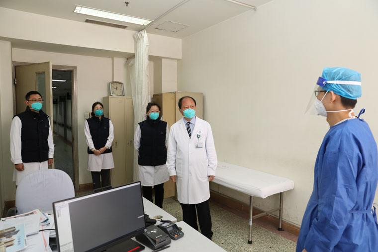 1126日,我院党委书记单保恩带领党办、院办、医务处、护理部、门诊部等职能部门负责人,到预检分诊、核酸采集处、门诊、病房等,督导检查医院疫情防控工作落实情况,亲切问候一线医护人员。每到一处,单书记都详细询问医疗、院感、安全等具体工作开展情况,协调解决存在困难。他表示,面对严峻的形势,医院干部职工充分发扬不怕吃苦、甘于奉献的精神,完成大量医疗救治工作,同时在新冠肺炎疫情防控工作和院感防控工作中作出重要贡献。希望大家坚定必胜信念,保持高昂斗志,在加强自我防护、确保安全的前提下,全力以赴打赢这场疫情防控阻击战,保障医疗工作有序开展。