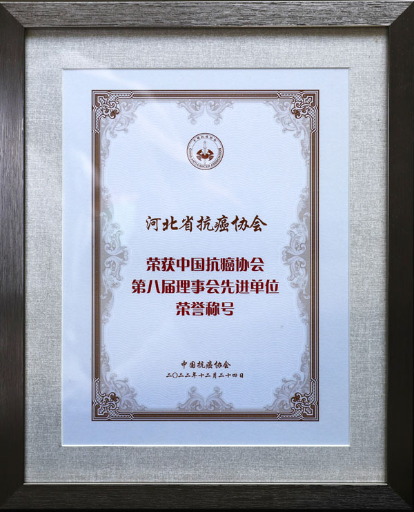 河北省抗癌协会获中国抗癌协会“第八届理事会先进单位”称号
