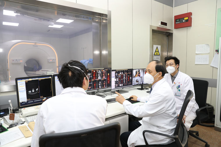 赵新明教授作为我院核医学科创始人,从1994年以来,在历届医院党委的支持和科室同志的努力下,始终秉承“争做行业领头雁,团结协作谋发展”理念,由小到大、由弱到强、砥砺前行。科室在省内最早引进PET/CT、SPECT/CT、PET/MR等高端医学设备,并及时更新换代,在省内最早使用全新数字化高分辨高端64排128层PET/CT,目前已完成十几万例的PET/CT和SPECT/CT骨显像检查,完成分化型甲状腺癌131碘治疗几千例,在肿瘤核医学专业领域积累了丰富的诊疗经验,科研水平和诊断能力达到省内领先、国内一流,为广大患者得到及时、精准、有效的治疗提供高质量服务。