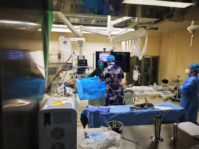 春节前夕,眼科医生为一名新生血管性青光眼患者行青光眼手术。