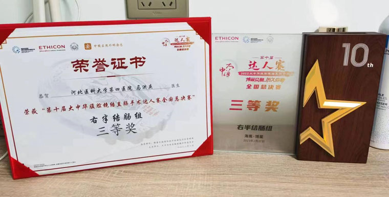 在“第十届大中华腔镜结直肠手术达人赛”中,我院外二科丁源一、马洪庆两位主治医师顺利通过河北省内海选、太行赛区决赛、北中国区决赛,作为仅有的两位获得一等奖的选手,代表北中国区参加全国总决赛。在决赛中,两位青年医师以全程英文讲解展示了典型手术视频案例,得到郑民华教授、兰平教授等来自全国结直肠外科手术领域知名专家的一致好评,分别获得结肠组三等奖的好成绩,彰显了外二科医师扎实的临床基础知识和精细的外科操作技巧。