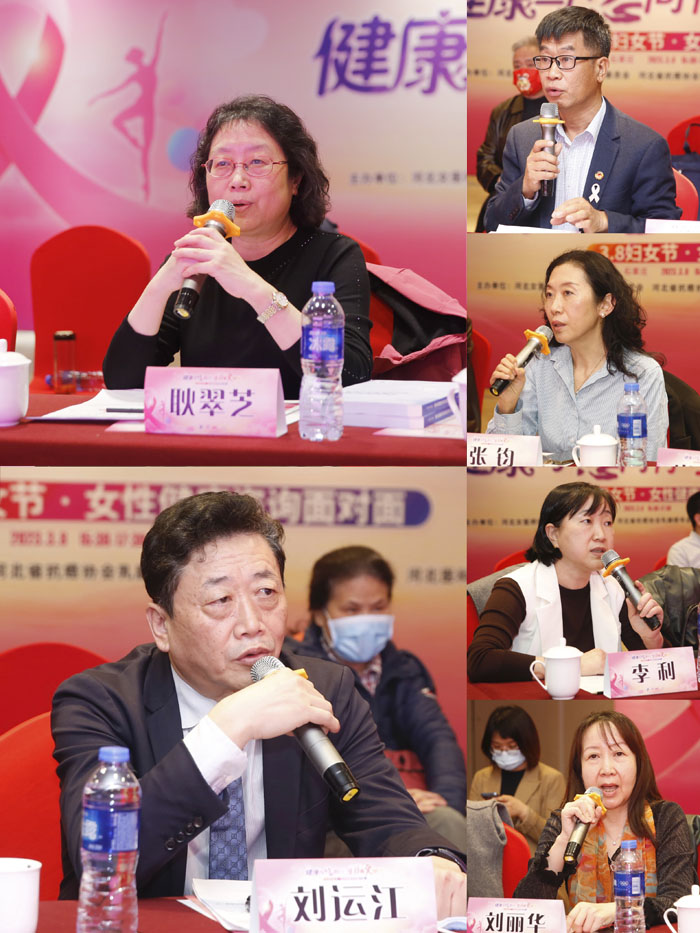 乳腺中心耿翠芝、刘运江、李海平、宋振川、李云涛、马力、回天立、谢艳丽、李赛男协同放疗科张钧、肿瘤内科崔彦芝、肿瘤免疫科刘丽华、妇科李利、产科杨志芬、生殖医学科郭丽娜组成专家团,就乳腺常见病、妇科常见病、生殖医学及健康生活等方面的问题为女性朋友答疑解惑,其中回天立、郭丽娜分别作了“乳腺健康相关知识介绍”“关爱卵巢”为主题的讲座。