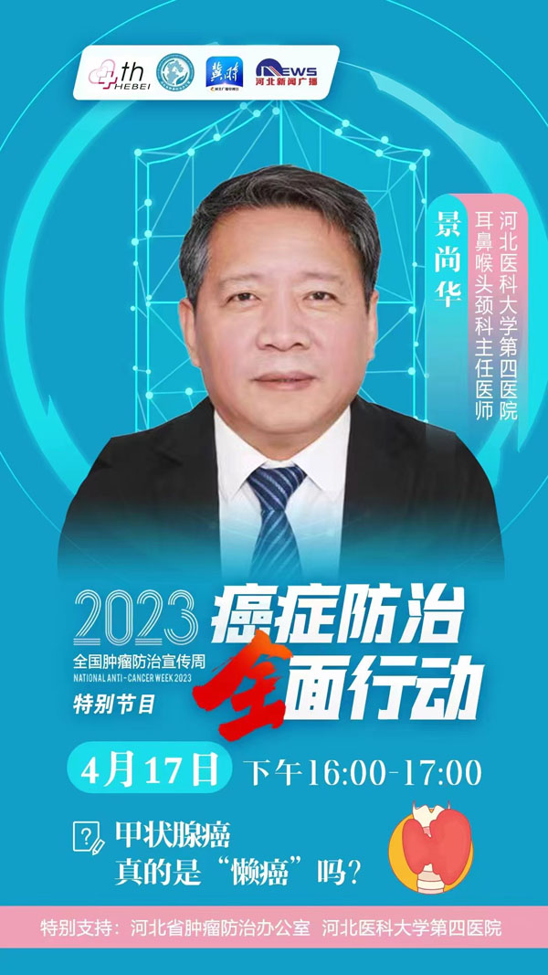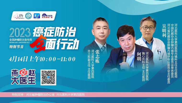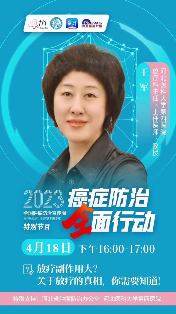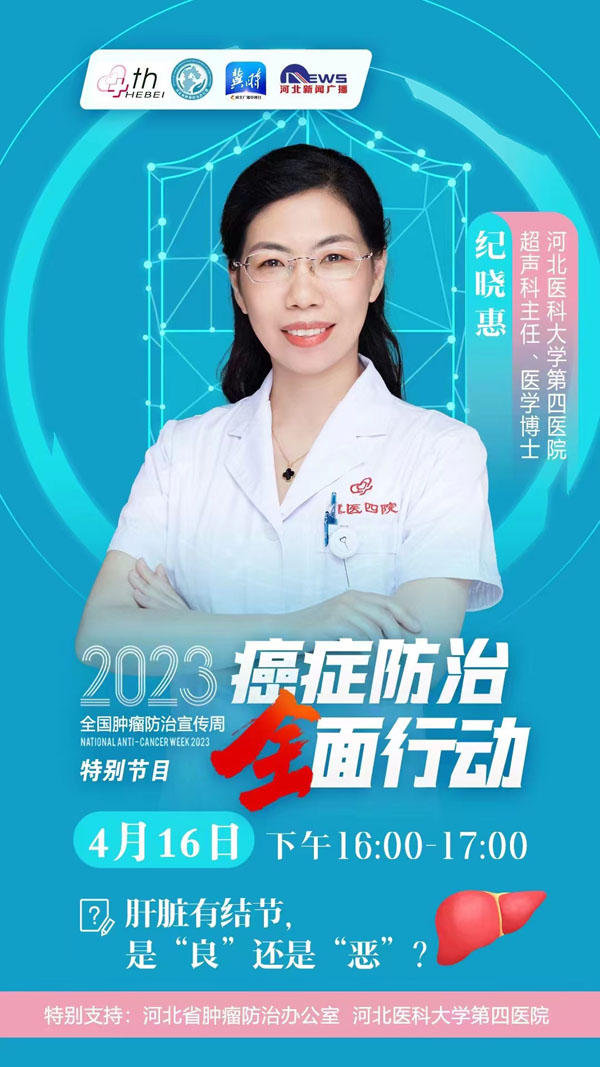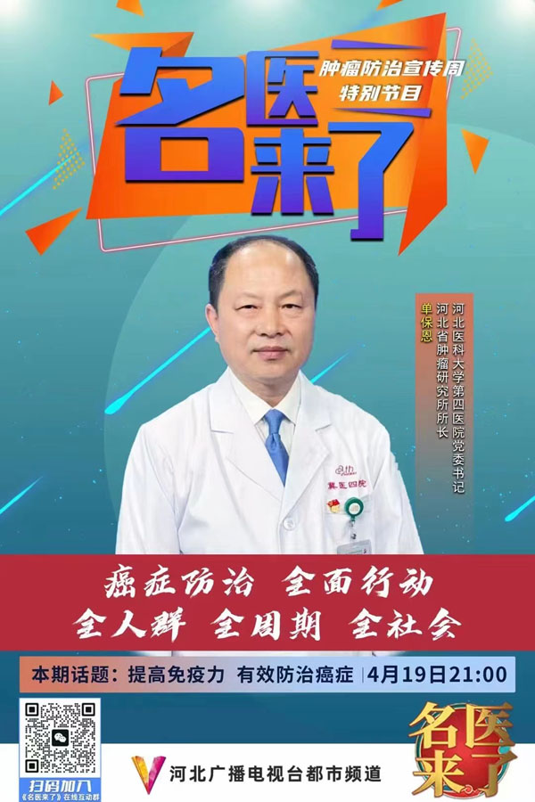 2023415-21日是第29届全国肿瘤防治宣传周,主题是“癌症防治、全面行动——全人群、全周期、全社会”。我院、河北省肿瘤防治办公室联合河北广播电视台《名医来了》《燕赵大医生》《健康动起来》等多档节目,派出多位知名专家,开展主题鲜明、内容丰富的科普宣教活动。全民防癌抗癌,一起来关注吧!