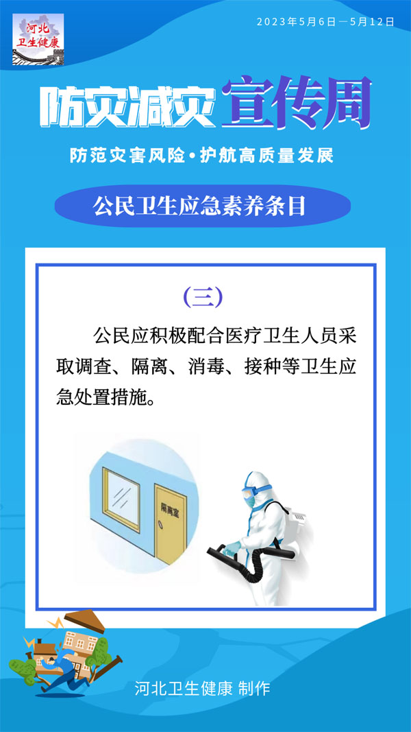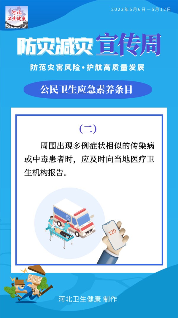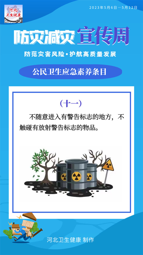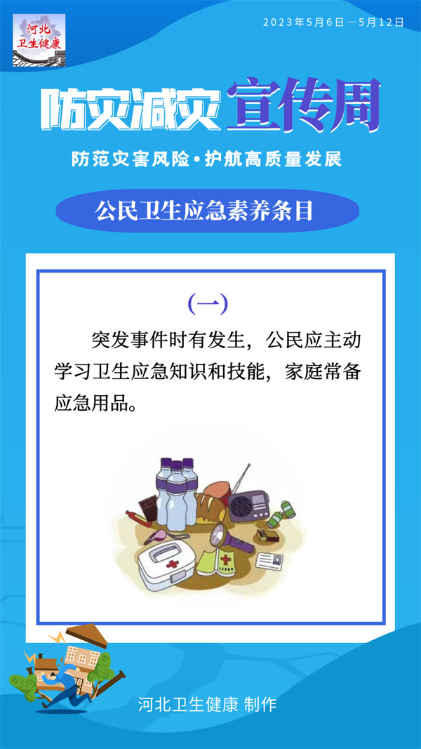 为普及卫生应急知识和基本技能,提升公民有效防范应对各类突发事件的意识和能力,国家卫生健康委员会应急办公室编制了公民卫生应急素养条目。条目共12条,涉及突发公共卫生事件应对,突发事件紧急医学救援、中毒及核辐射应急处置等基本知识和要求。