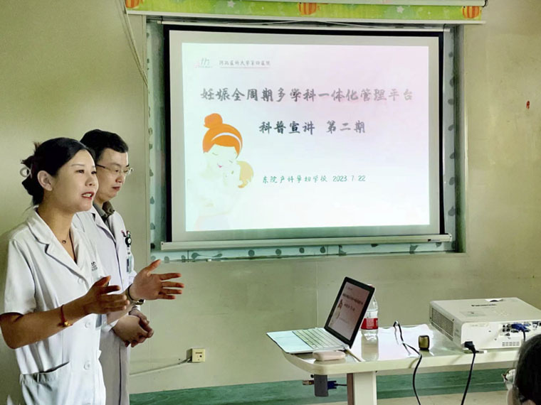7月22日,东院产科孕妇学校举办了“妊娠全周期多学科一体化管理平台”第二期科普宣讲活动,邀请乳腺中心回天立副主任医师现场授课,帮助20余组家庭深入了解“哺乳期乳腺炎”。