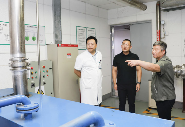 马景涛副院长向各班组人员详细询问、了解各类设备的运转、安全保障设施、雨污分流、高压配电断电自动切换、冷凝水回收再利用等情况,他表示,管理人员要注意设备的使用年限和运行状态,要根据设备的折损情况和环保排放标准要求,提前判断设备的改换节点,并制定应对方案,消除安全隐患,确保各类设备安全运转,保障科室的使用需求。班组和运维单位严格按照规范做好运维工作,要与保卫处联合对自行车存放点的无主车辆依规清理。对部分损坏的水泵等设施要尽快维修,恢复使用。他强调,节日期间各班组要做好值班值守工作,保持通讯畅通,及时解决临床反馈的各类问题,为“双节”期间医院正常运转保驾护航。