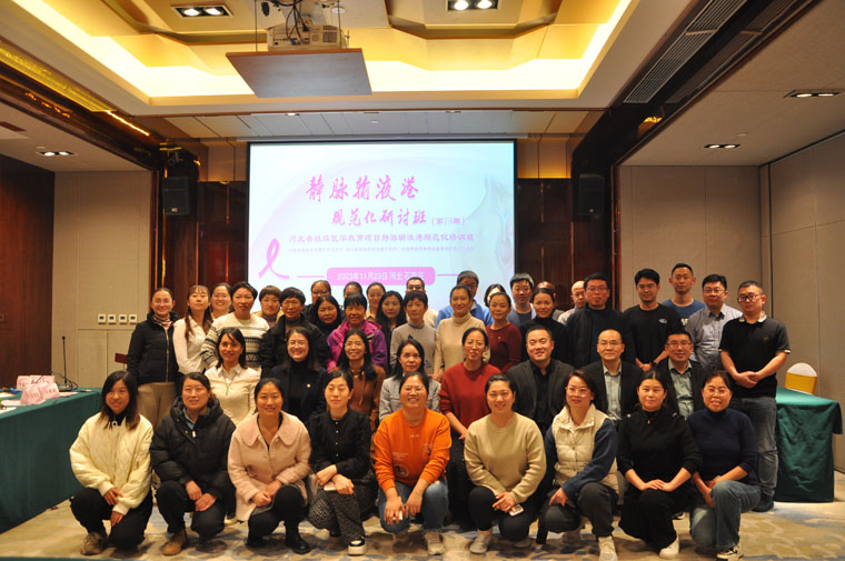 近日河北省适宜技术推广示范项目暨19期静脉输液港规范化培训班开班,该项目由河北省乳腺疾病诊治中心暨我院乳腺中心主办,来自我省多地市、县级医院相关科室骨干50余参加。培训班旨在进一步落实《河北省“适宜卫生技术推广示范县”建设方案(2023—2025)》要求,提高基层医院医疗、护理水平,其中,乳腺中心对口帮扶单位——望都县医院静脉港团队的5名医护人员也参加了此次培训。