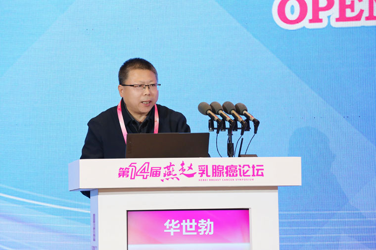 中国临床肿瘤学会副理事长兼秘书长、中国抗癌协会乳腺癌专委会候任主委江泽飞教授代表两个专委会祝贺会议的圆满召开,并表示将一如既往地支持河北省乳腺肿瘤领域的工作,与省内同仁一起将中国乳腺癌诊治指南深入推进,取得规范诊治的良好效果。