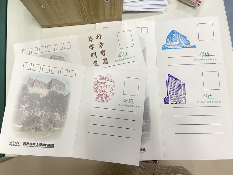 毕业纪念品经过精心设计,由烫金书签、签字笔、充电宝和明信片组成,并印有河北医科大学第四医院的标识。教务处悉心准备了医院文创元素的印章,希望同学们前来集邮,意在嘱咐每一位毕业生不忘初心,奋勇向前。明信片造型的拍照展板寓意扬帆起航,逐梦未来。