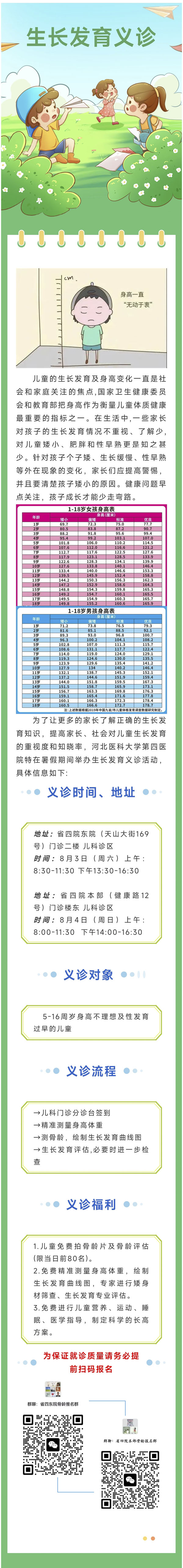 助力儿童成长丨河北医大四院儿科2024年暑期生长发育义诊来啦