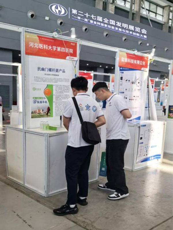 我院推荐的“幽门螺旋杆菌产品组合”项目在高校和科研院所展区展出,同期参与了知识产权与成果转化双向路演对接会。该项目由我院党委书记单保恩教授领衔主导,是我院及合作单位历经15年辛勤研究与探索汇聚而成的杰出成果。该项目获得了专业评委的高度评价和认可,同时吸引了众多观展者关注,他们积极了解咨询,表示了浓厚的兴趣和青睐。
