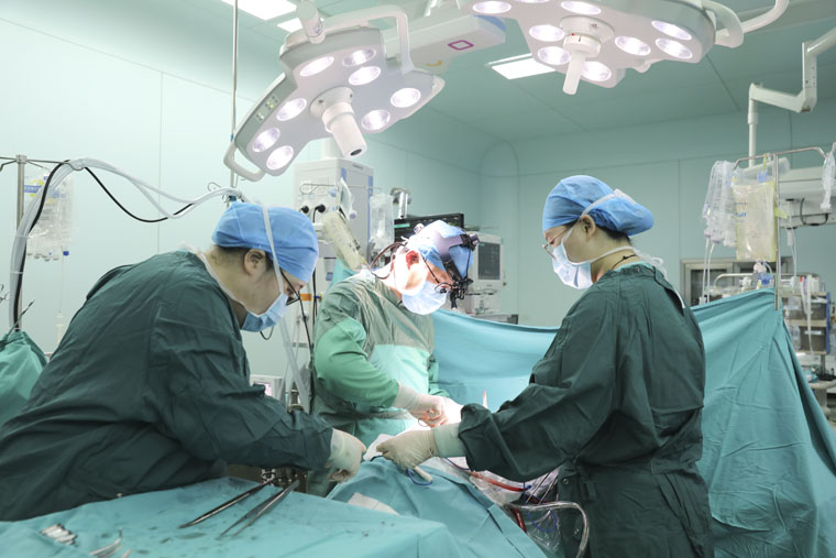 十年如一日,熬过了无数个不眠之夜,赵永波带领团队已完成主动脉夹层手术近2000台,当前,科室也以主动脉综合征手术为诊疗特色。赵永波还带领手术团队率先在省内完成胸腔镜心脏手术,目前常规开展胸腔镜下心脏黏液瘤手术、先心病手术、瓣膜置换手术、微创小切口冠脉搭桥术等,为众多心脏疾病患者带来福音。
