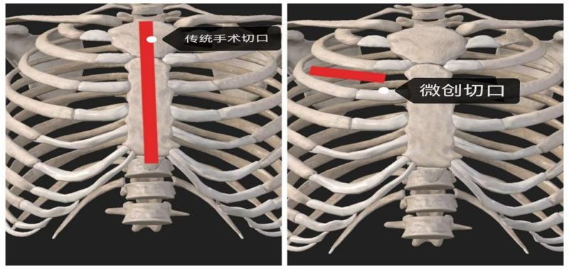 该患者日前突然出现心慌、气短,伴大汗,每次持续数分钟,发作无规律,严重影响了生活和工作,在当地医院查心脏超声提示“升主动脉瘤”。“我对这个名词并不陌生,因为我的母亲和哥哥都得过这个疾病,在省四院心脏血管外科团队的手术救治下,都好起来了”。基于这份信任,患者第一时间来我院检查,明确诊断为升主动脉瘤,动脉瘤直径约6.5cm,随时有动脉瘤破裂或发生夹层危及生命的可能,需要尽快手术。但是,已两次目睹过自己亲人纵劈胸骨的“大切口”,让患者心理压力巨大,在谈话中,他数次向主管医生提及能否实现“微创手术”。