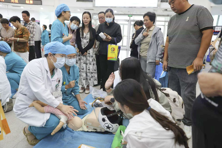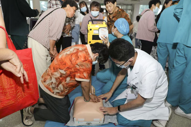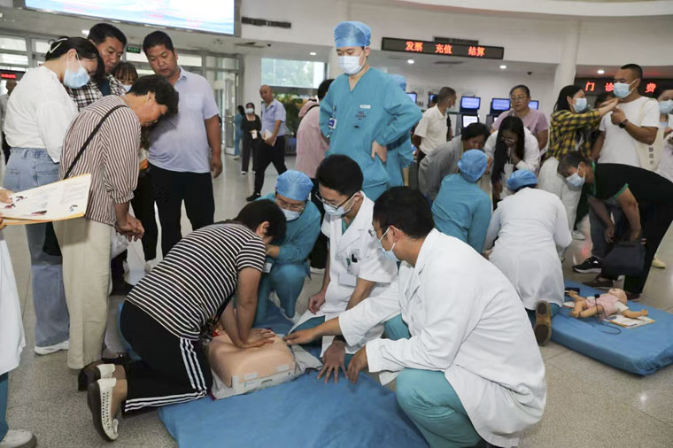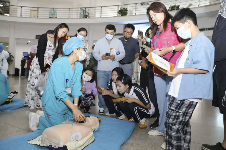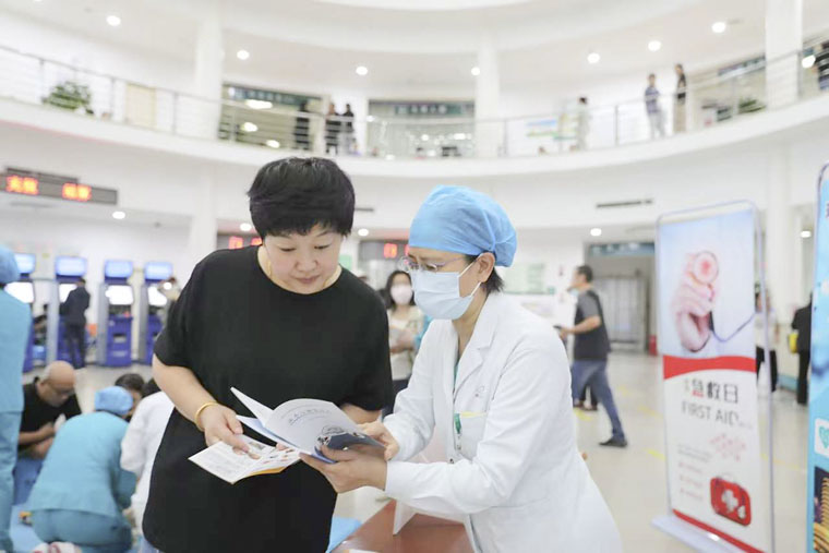 于斌主任医师、李玉护士长等急诊科医护人员,通过生动的讲解,向在场人员演示心肺复苏中的胸外按压及AED技术的操作过程。让大家更好地掌握这项技能,活动现场还提供了模拟人进行实操练习。在医护人员的指导下,现场人员纷纷上前尝试,通过实际体验加深理解。通过宣传展板内容展示、发放急救知识手册等方式,很多来院就诊患者及家属驻足学习。医护人员耐心为大家解答关于急救的各种问题,引导他们了解急救的基本知识和技能。