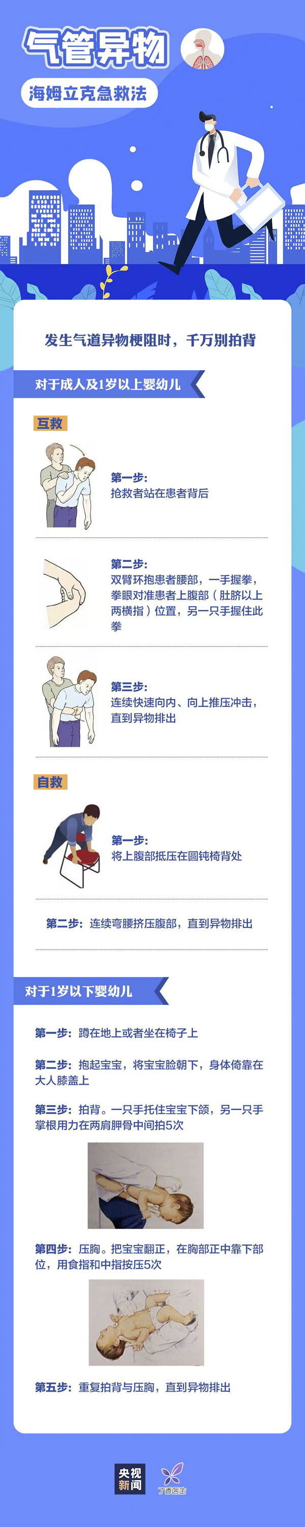 3.当自己或他人在吃东西时,突然被“卡”住,面唇青紫,无法呼吸,我们该怎么做?