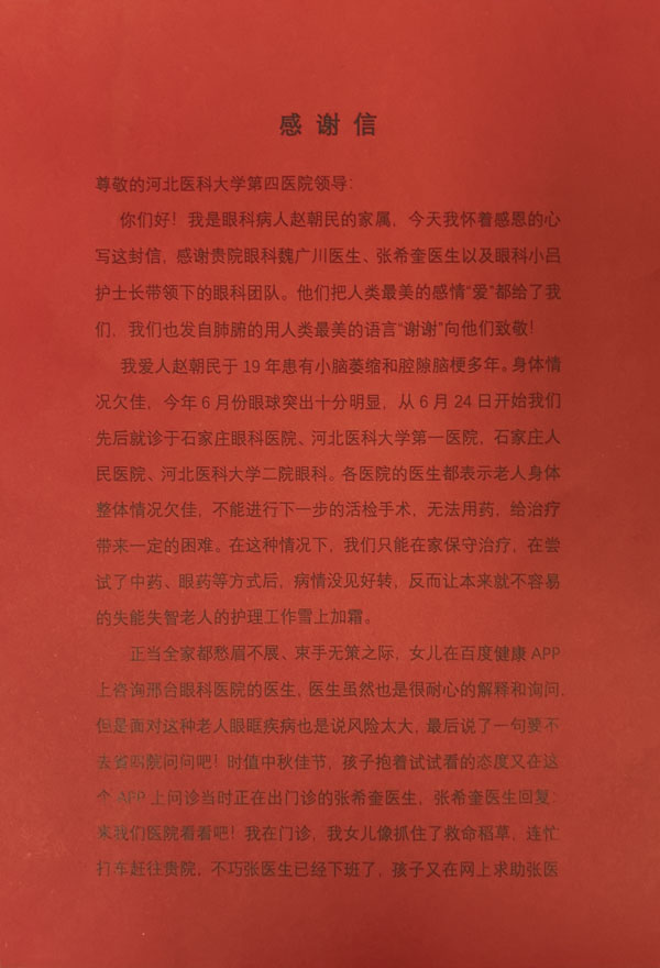 特殊患者辗转求医:我院眼科精心治疗受称赞