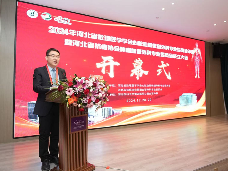 近日,2024年河北省数理医学会心脏血管微创外科专委会年会暨河北省抗癌协会肿瘤血管外科专委会成立大会在石家庄召开,我院常务副院长何宏涛,副院长马景涛,河北省抗癌协会理事长、河北省肿瘤研究所所长、我院单保恩教授,河北省抗癌协会副理事长、我院刘运江教授,河北省数理医学副会长于宝海,河北省医学会血管外科主任委员毕伟出席会议。