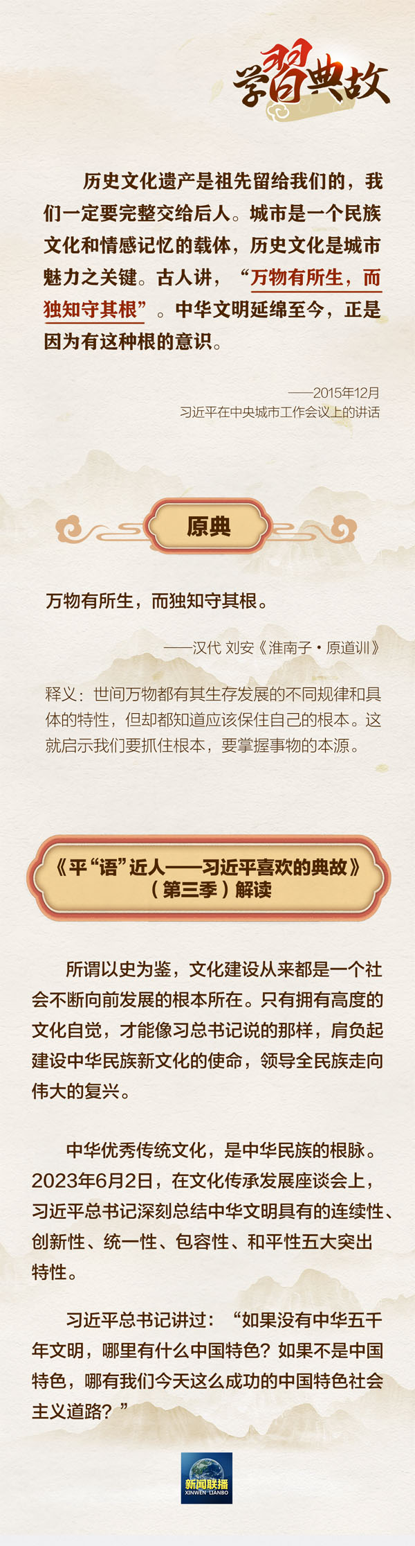 文运同国运相牵,文脉同国脉相连。文化自信是一个国家、一个民族发展中,最基本、最深沉、最持久的力量。党的二十大报告中指出:“全面建设社会主义现代化国家,必须坚持中国特色社会主义文化发展道路。”围绕“文化建设”这一主题,总书记曾讲到哪些典故?一起学习↓↓↓