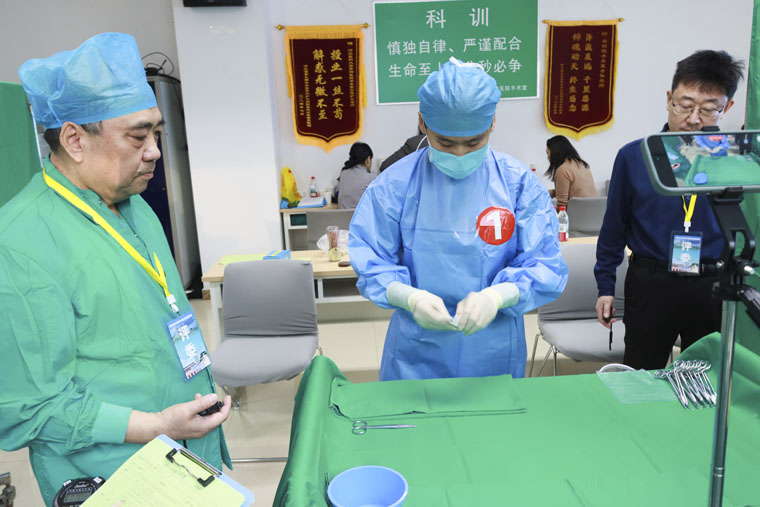 经过激烈角逐,院陈立华获得穿针引线、侧卧位安置两个单项的第一名,河北医科大学第二医院马少帅获得腔镜器械组装单项第一名;院陈立华和刘淼森、石家庄市人民医院冯琳奕获得综合成绩一等奖,并评选出二等奖7名,三等奖10名。本次选拔赛的单项奖第一名,将组成河北省代表队,参加中华护理学会手术室专业委员会举办“第一届手术室护理职业技能展示活动”,届时与全国各省代表队进行角逐,期待他们取得佳绩
