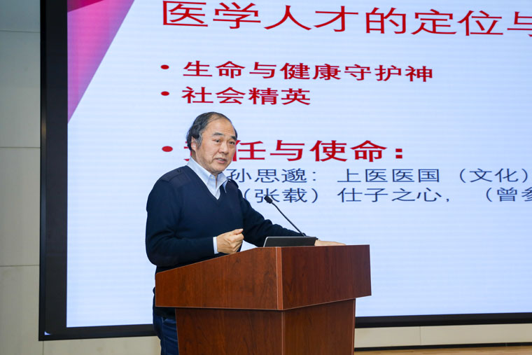 姚树坤教授以《医学人才成长之路》为主题进行授课,介绍了医学教育的特点、医学生的责任与使命、成才的三要素等,勉励同学们在四院这个广阔平台上夯实知识、锤炼技能,以大医精诚为志,做心怀家国的医学人。