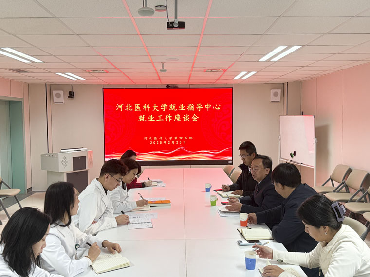 河北医科大学就业指导中心吴志峰主任一行前往我院调研和座谈。吴志峰主任对我院的就业工作给予了充分肯定,大家就持续加强就业政策宣传、深化教师就业指导培训、引导学生就业观念转化等举措深入探讨,并为新学期就业指导课程持续优化、教学方法提升、创新授课方式提供新思路新方法,为学生日后高质量就业打好坚实的基础。