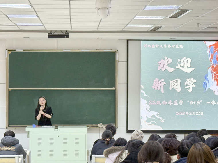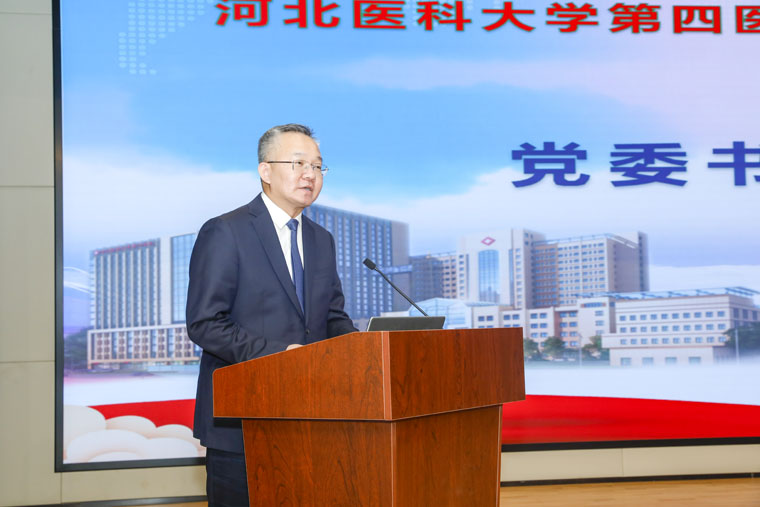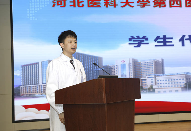 李立平书记代表河北医科大学第四医院对新同学的到来表示热烈欢迎,他表示,我院对教学工作高度重视,拥有丰富的教学资源和广阔的实践平台,希望大家要珍惜好学习机会,利用好学习平台,并对大家提出四点嘱托:一是从现在做起,从小事做起,将个人成长融入国家发展和社会进步的洪流中;二是要长期坚持全心投入,树立终身学习的意识并落实到行动中;三是要懂得取舍,选择为国家,为大众谋福祉,在服务国家奉献社会中成就自己;四是坚定理想,君子以自强不息,既然选择医学之路就要为之努力。李立平书记最后祝愿同学们可以在四院扣好人生的第一粒扣子,勤奋学习,不负韶华,学有所获,行有所成。