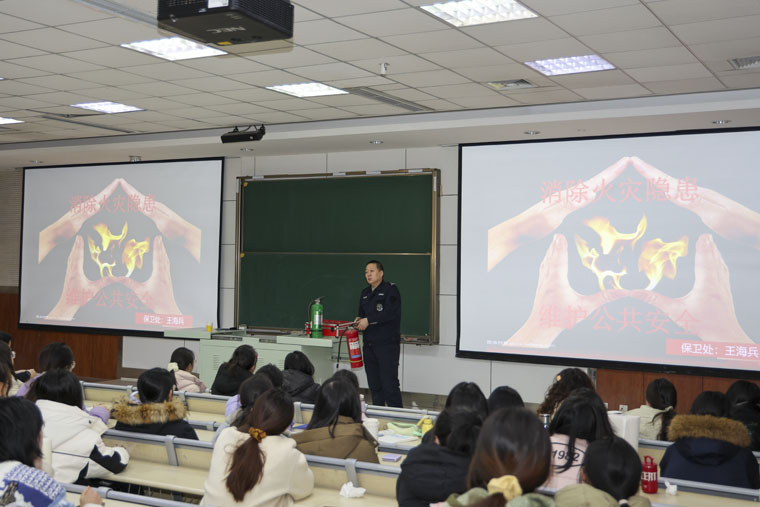 教务处联合保卫处对新生开展消防安全知识培训,培训会上保卫处全面系统地讲解应急疏散、消防器材的使用等消防知识,切实增强了新生安全责任意识及自我保护能力,共同营造安全的教学环境。